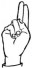 На ћирилици написано ШАЛЕ ЧАЈЕТИНАЦ састоји се из 13 слова [?]. Исписано ћириличном једноручном азбуком за глувонеме:
